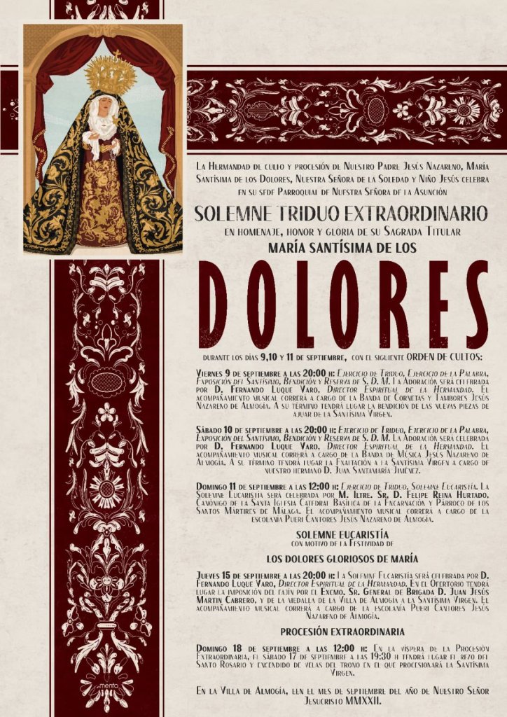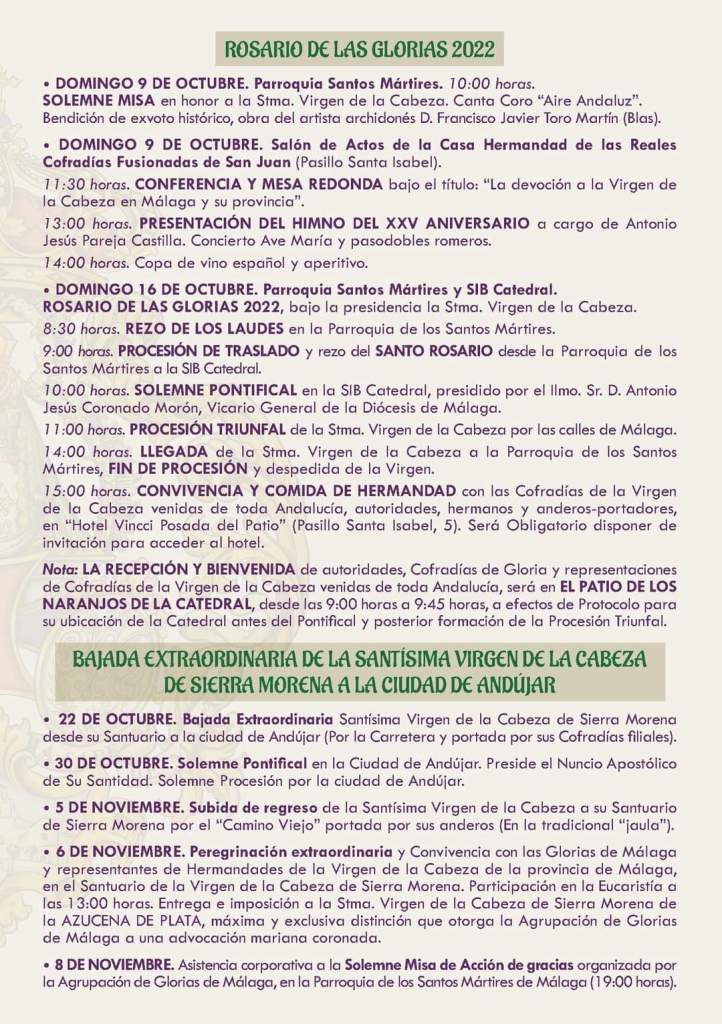 PROCESIÓN MAGNA EXTRAORDINARIA con motivo de la conmemoración de la Coronación Canónica de Nuestra Señora, a celebrar en la tarde del día 10 de septiembre de 2022, fecha en la que se verificó su Coronación y formada por las imágenes de las Vírgenes de las Cofradías de Pasión y Gloria de la Ciudad de Antequera.