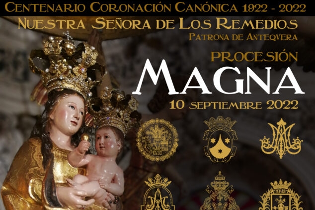 Hoy 10 de Septiembre se celebrará en Antequera la Magna s con motivo del 475 Aniversario de la proclamación de Nuestra Señora de los Remedios como Patrona de Antequera (1546-2021), Centenario de la Coronación Canónica de Nuestra Señora (1922-2022) y V Centenario de su aparición (1522-2022).